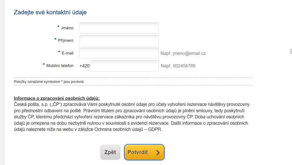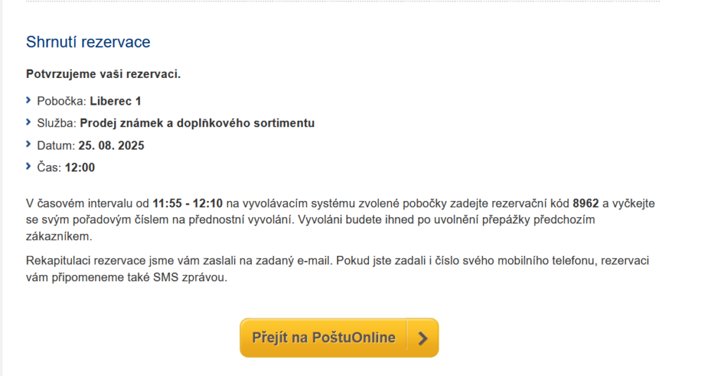 - PoštaOnline (rezervace) – adresa: postaonline.cz/rezervace