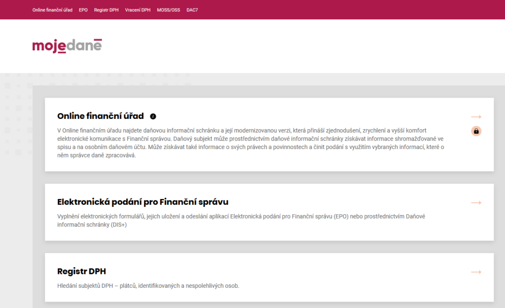 - Moje daně – adresa: mojedane.gov.cz
