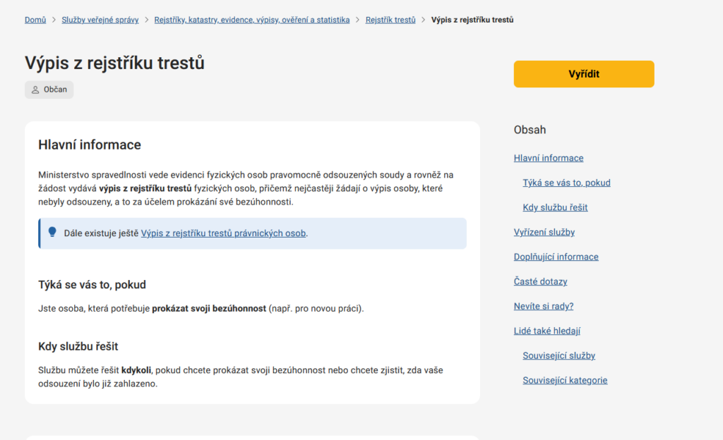 Krátké vysvětlení: Elektronicky získáte výpis, který se často vyžaduje pro pracovní účely nebo dobrovolnictví.