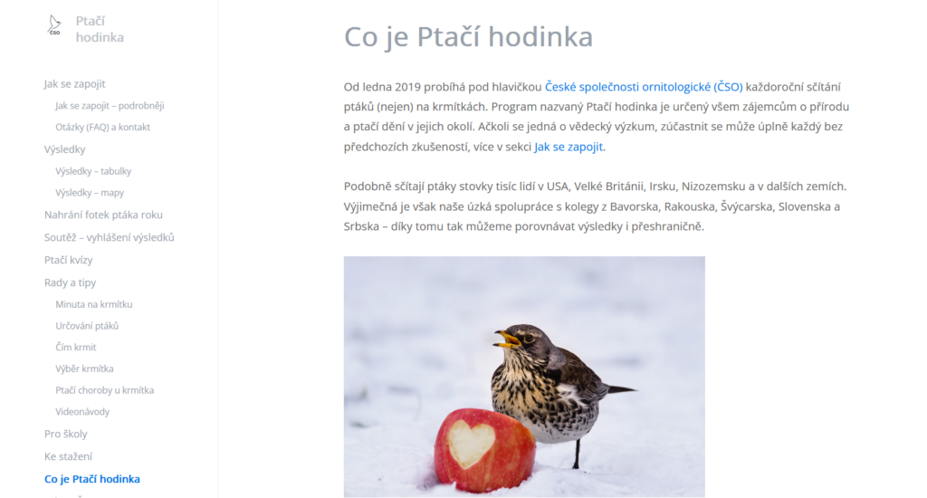 V České republice je jedním z nejnámějších projektů občanské vědy Ptačí hodinka, my se ale zaměříme hlavně na ukázku dalších témat, která nám rozšíří tematické či regionální možnosti spolupráce.