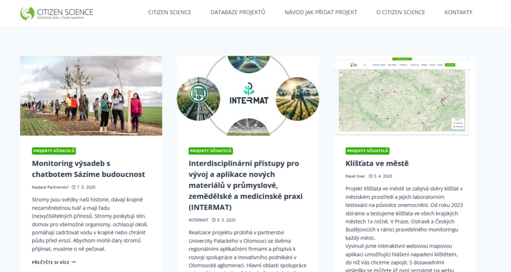 Portál citizensccience,cz a jeho databáze projektů občanské vědy
