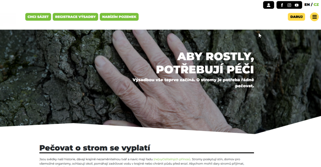 Popis: Projekt zaměřený na sledování výsadeb stromů, s názvem „Sázíme budoucnost“. Zapojení veřejnost pomáhá monitorovat skutečný stav výsadby – stromy, jejich růst, přežití a význam v krajině.
