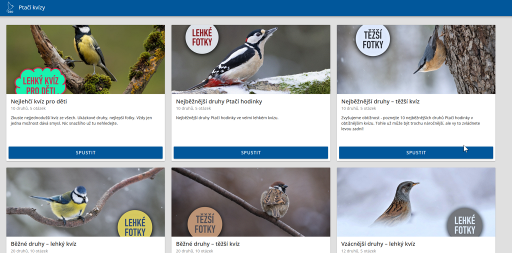 - Projděte si přehled nejběžnějších zimních druhů (např. sýkory, vrabci, kos, zvonek).