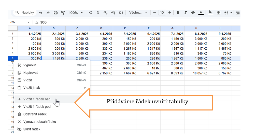 - Klikněte pravým tlačítkem na číslo řádku, u kterého chcete vložit nový.