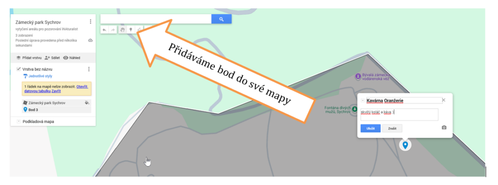 Do vytvořené mapy můžeme přidávat svoje místa v podobě bodů.