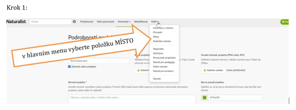 Lekce 6. 1 Založení vlastního projektu v aplikaci iNaturalist