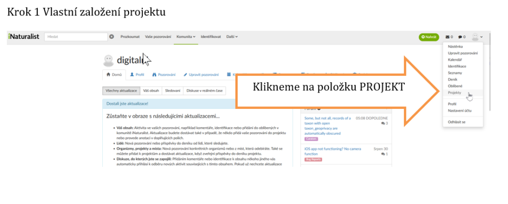 - Krok 1: Přihlaste se do iNaturalist na počítači a otevřete sekci Projekty → Nový projekt.
