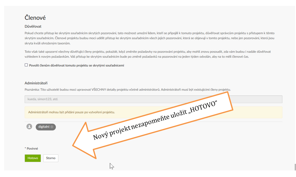 - Krok 6: Volitelně přidejte obrázek/ikonu (logo či ilustrační fotografii), poté projekt Uložit. Od této chvíle se do projektu propisují všechna pozorování, která splní zadané podmínky.