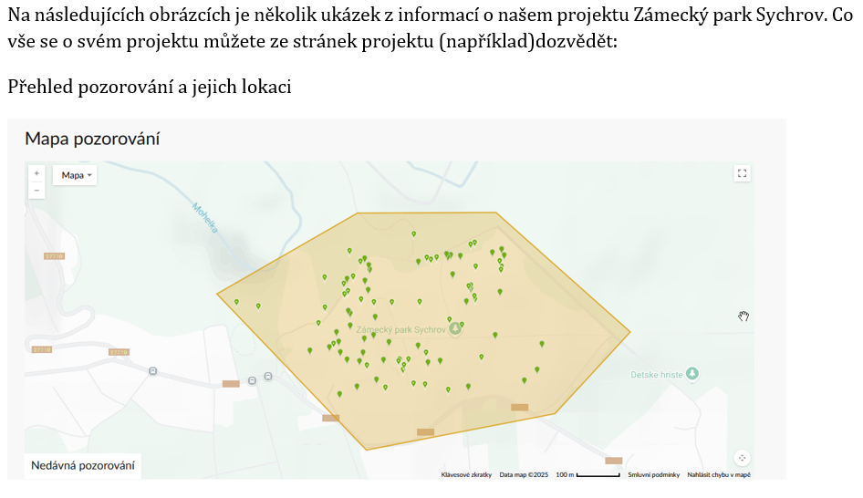 - Filtry projektu (místo, taxony, období) lze kdykoli jemně upravit podle toho, co chcete sledovat.