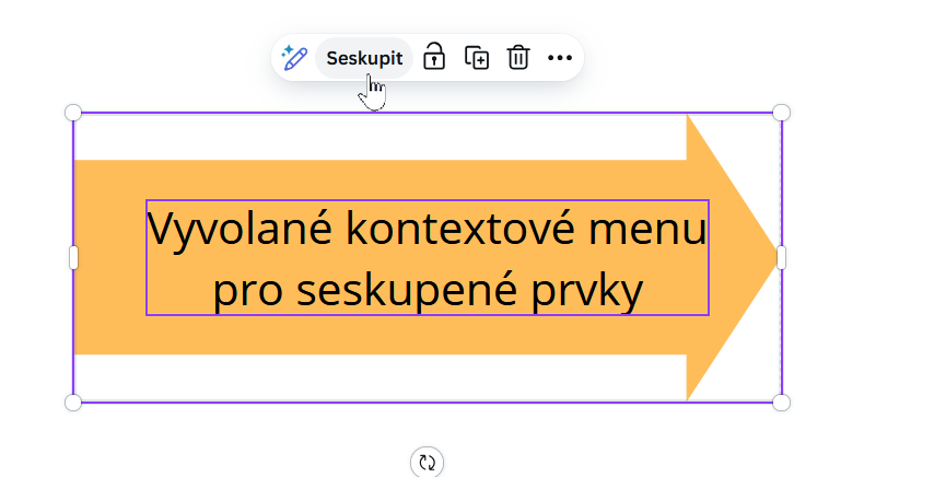 Kontextové menu otevřete pravým klikem na vybraný prvek nebo skupinu prvků. Nabídka je tzv. kontextová , což znamená, že se zobrazí jen příkazy relevantní k aktuálnímu výběru (jiné u textu, jiné u tvaru či obrázku, případně u více objektů najednou).