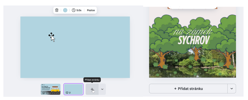 V panelu stránek klikněte v jeho pravém dolním rohu na tlačítko + Přidat stránku (Add new page). Okamžitě se vloží nová prázdná stránka, připravená k úpravám.