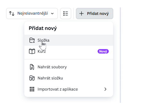 - V dynamické obsahové oblasti zvolte + Nová složka.