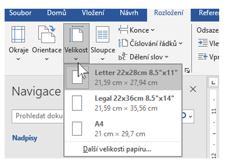 - Velikost → zvolte A4 (běžné v ČR) nebo jiný formát.