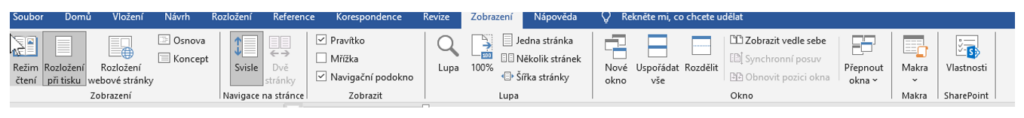 Učíme se pracovat se zobrazením – doporučený pohled pro práci a tisk – kde kliknout: