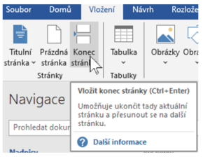 - Nebo: Vložení → Konec stránky.
