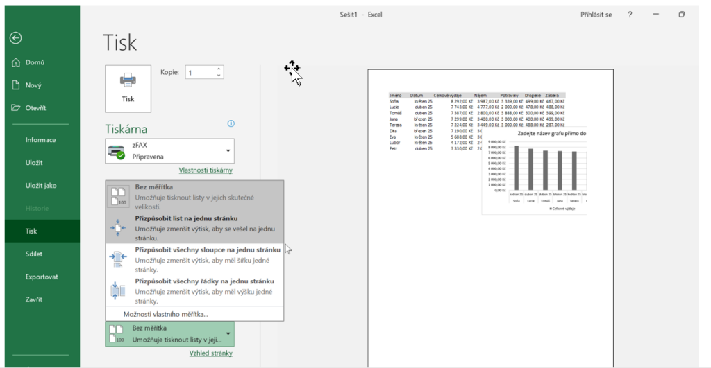 Umíte použít náhled před tiskem, nastavit okraje, orientaci a velikost papíru, zvolit co tisknout (celý list / oblast tisku / tisk výběru) a uložit výstup jako PDF. Takto připravené tabulky jsou čitelné a snadno sdílitelné.