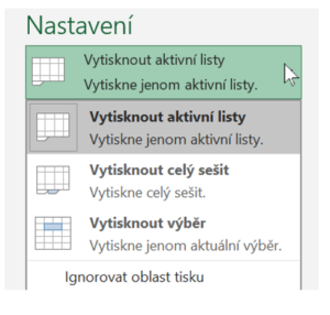 - Vytisknout celý list, oblast tisku nebo jen označený výběr.