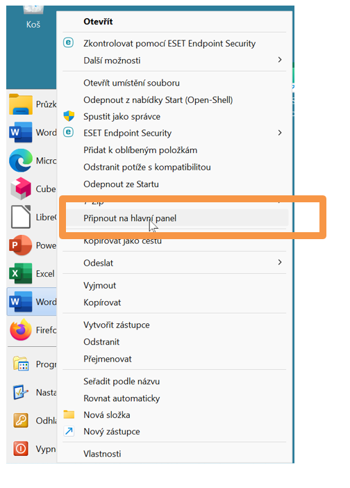 - Klikněte na něj pravým tlačítkem myši → Připnout na hlavní panel.