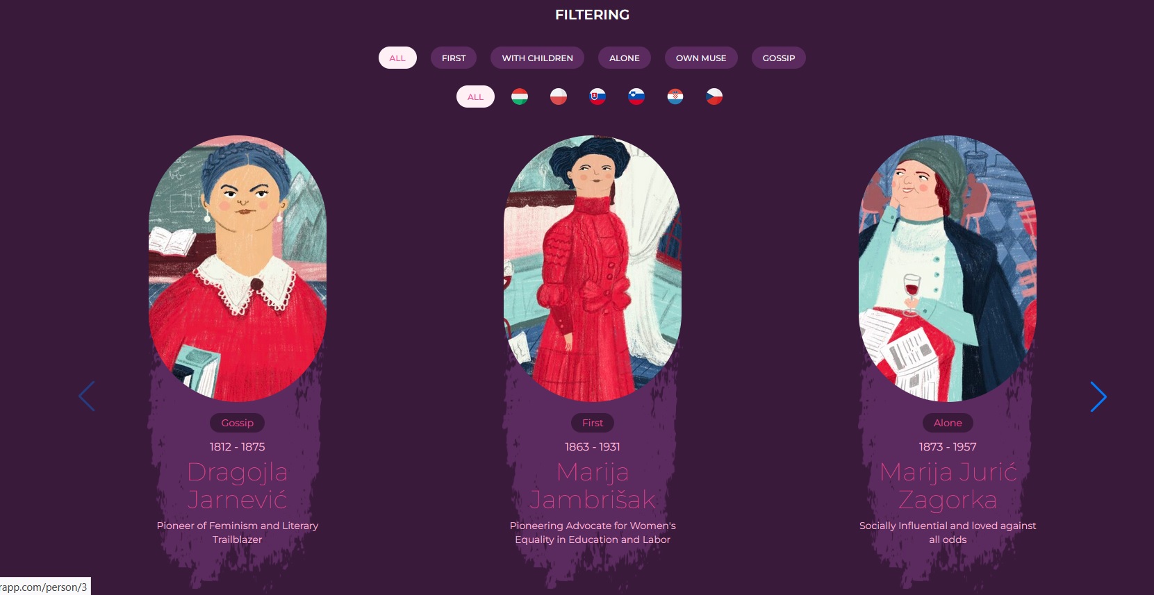 - Partners developed content featuring 30 women from history, cultural history, science and sports from partner countries. The content has been translated into English and all national languages of the project partners. Illustrations and animations have been created to accompany the text.